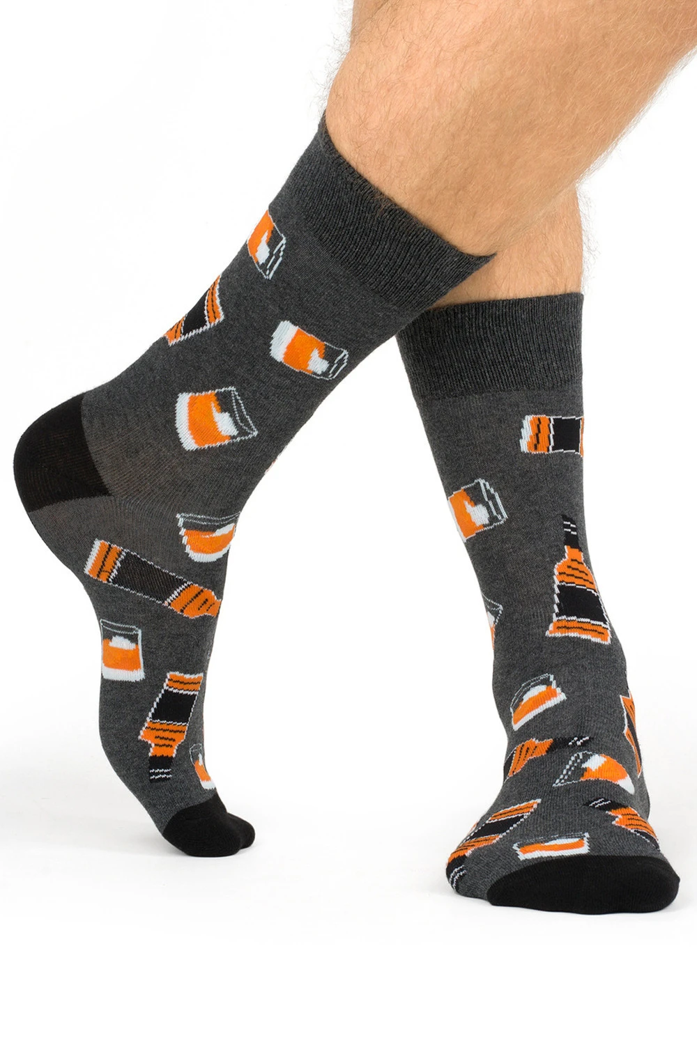 Носки мужские украшены принтом Виски. Фирменная упаковка в виде металлической бутылочке. Прекрасный вариант необычного подарка близкому человеку.