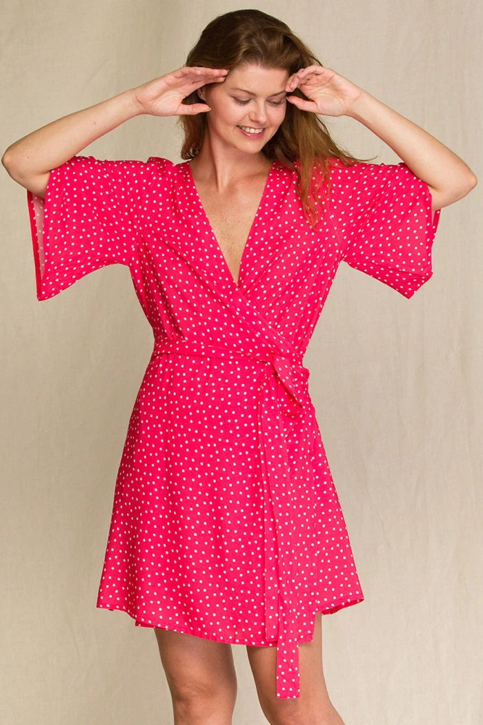 - Изготовлено из приятной к телу, шелковистой вискозы и декорировано принтом в горошек.