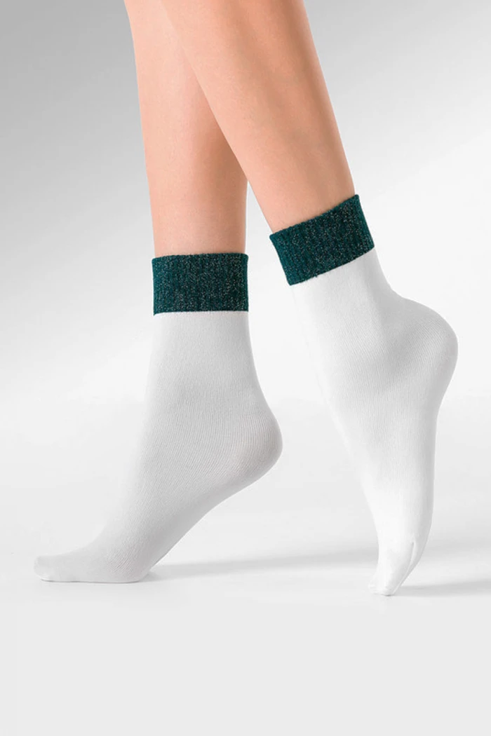 Стильные белые носочки Gabriella Ria с зеленой мерцающей резинкой.