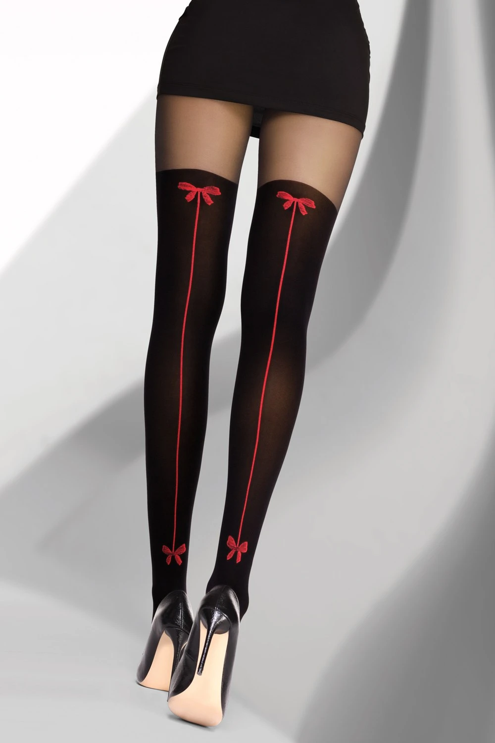 Фантазийные колготки Livia Corsetti Amita, имитирующие плотные чулки. Декорированы игривыми яркими бантиками сверху и снизу изделия, а также красной стрелкой. Одна из самых соблазнительных моделей колгот в этом сезоне!
