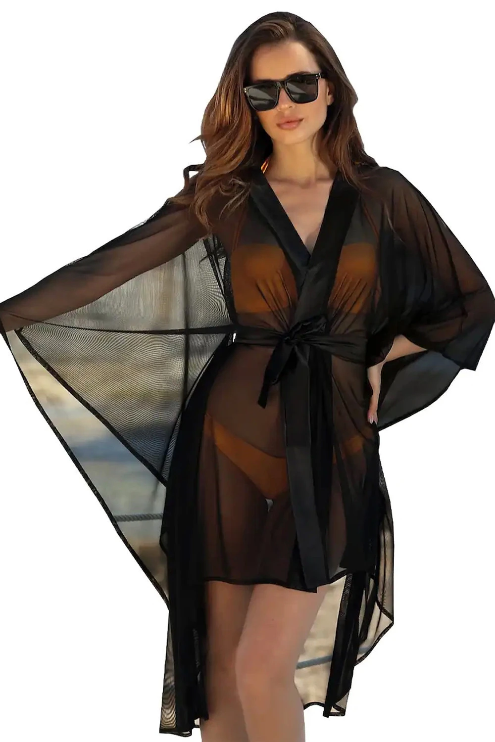 - Изготовлен из черной полупрозрачной ткани.