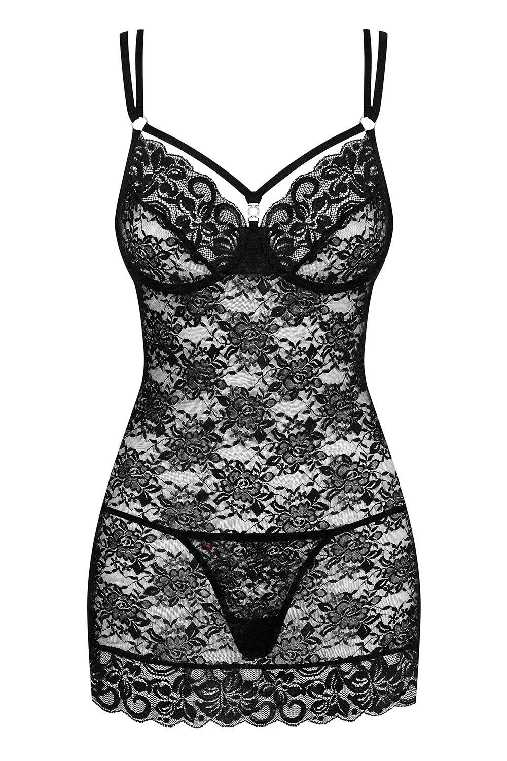 Роскошная сорочка Obsessive 860-CHE-1 сочетает в себе сразу несколько обезоруживающих деталей. Черное кружево, обтягивающий фасон и стильные ремешки - это именно то беспроигрышное сочетание, в котором каждая женщина будет выглядеть страстной и чувственной. С таким бельем горячая ночь с любимым точно не заставит себя ждать.