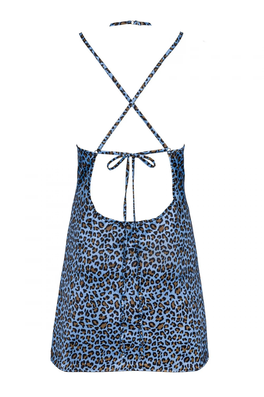 - Глубокое декольте украшено декоративными бретелями и атласным бантом с блестящей подвеской.
