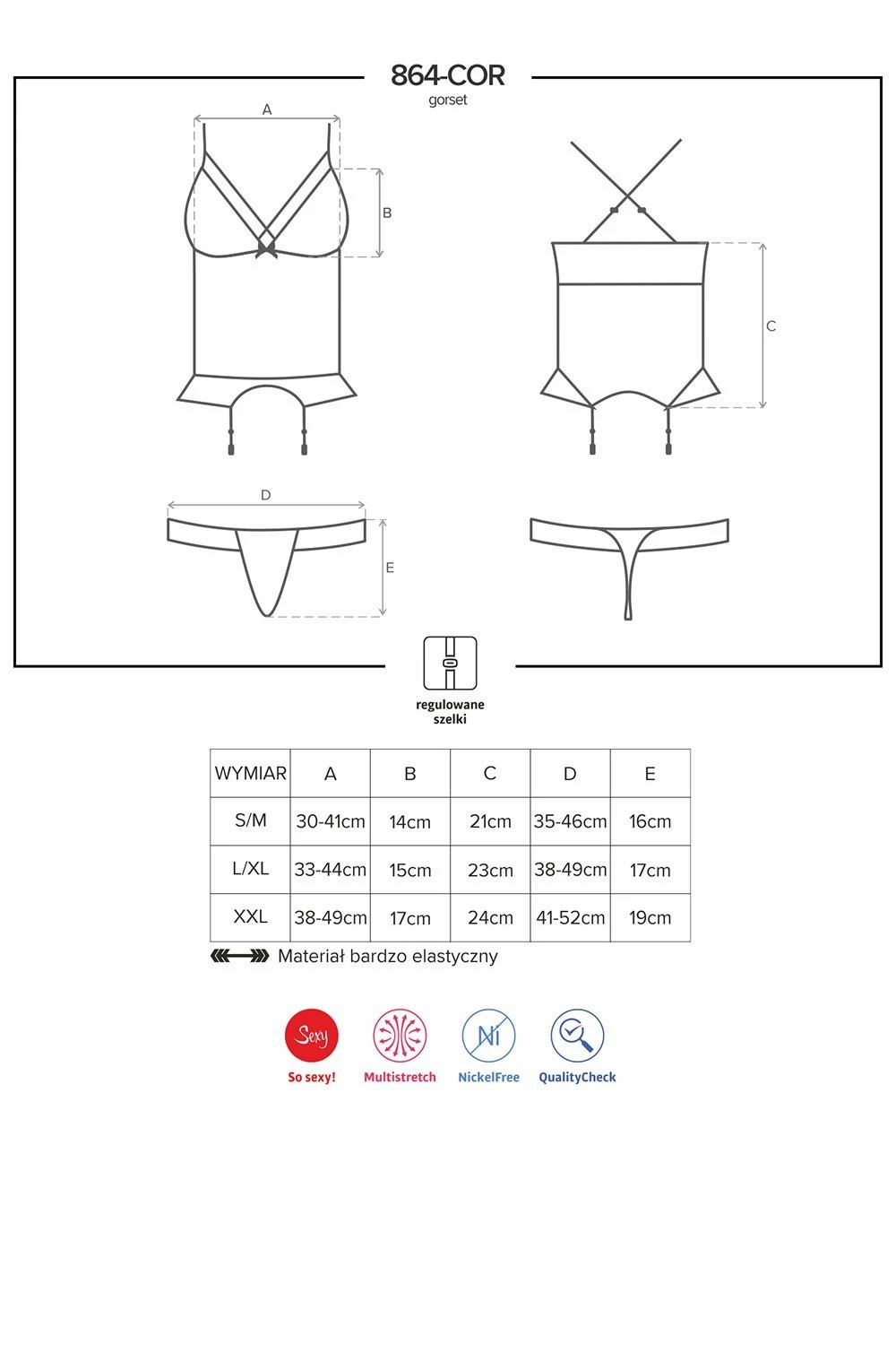- Еластичні пажі для панчіх і бретелі регулюються по довжині.